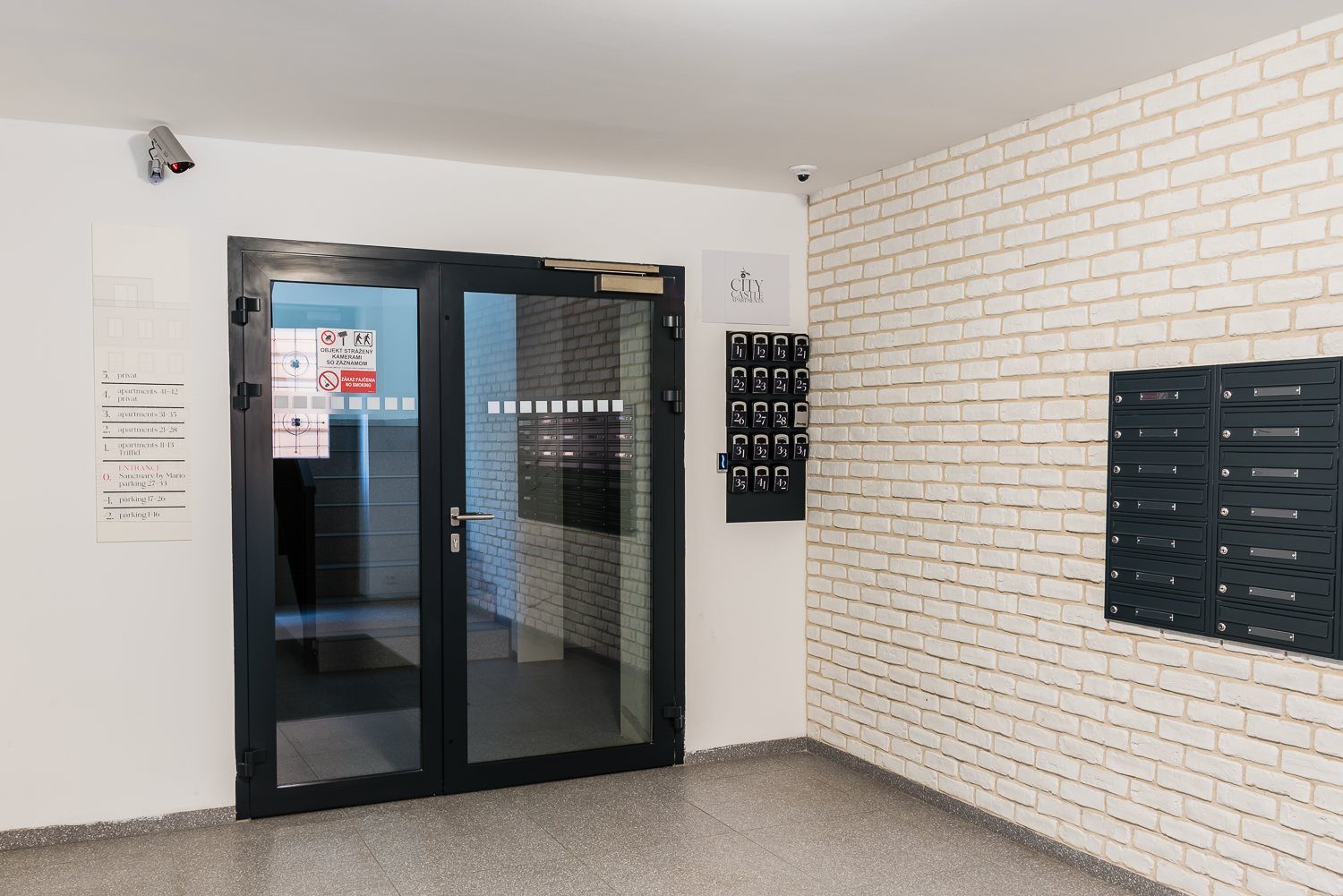 Do budovy sa dostanete pomocou čipu, alebo prístupového kódu.